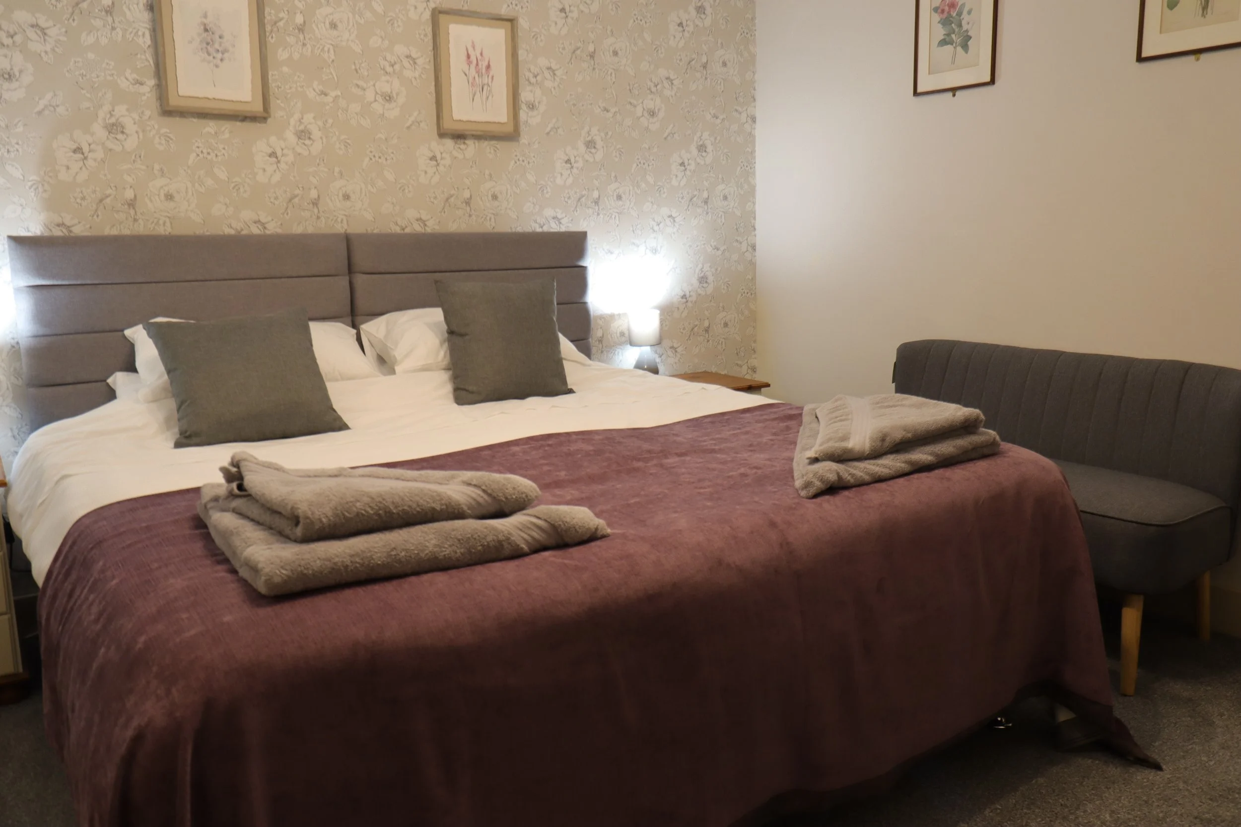 The bedroom has a versatile zip'n'link bed that can be arranged as a Super-King or two singles to suit your needs. Additionally, there's a sofa bed available upon prior arrangement, offering extra sleeping space if required.