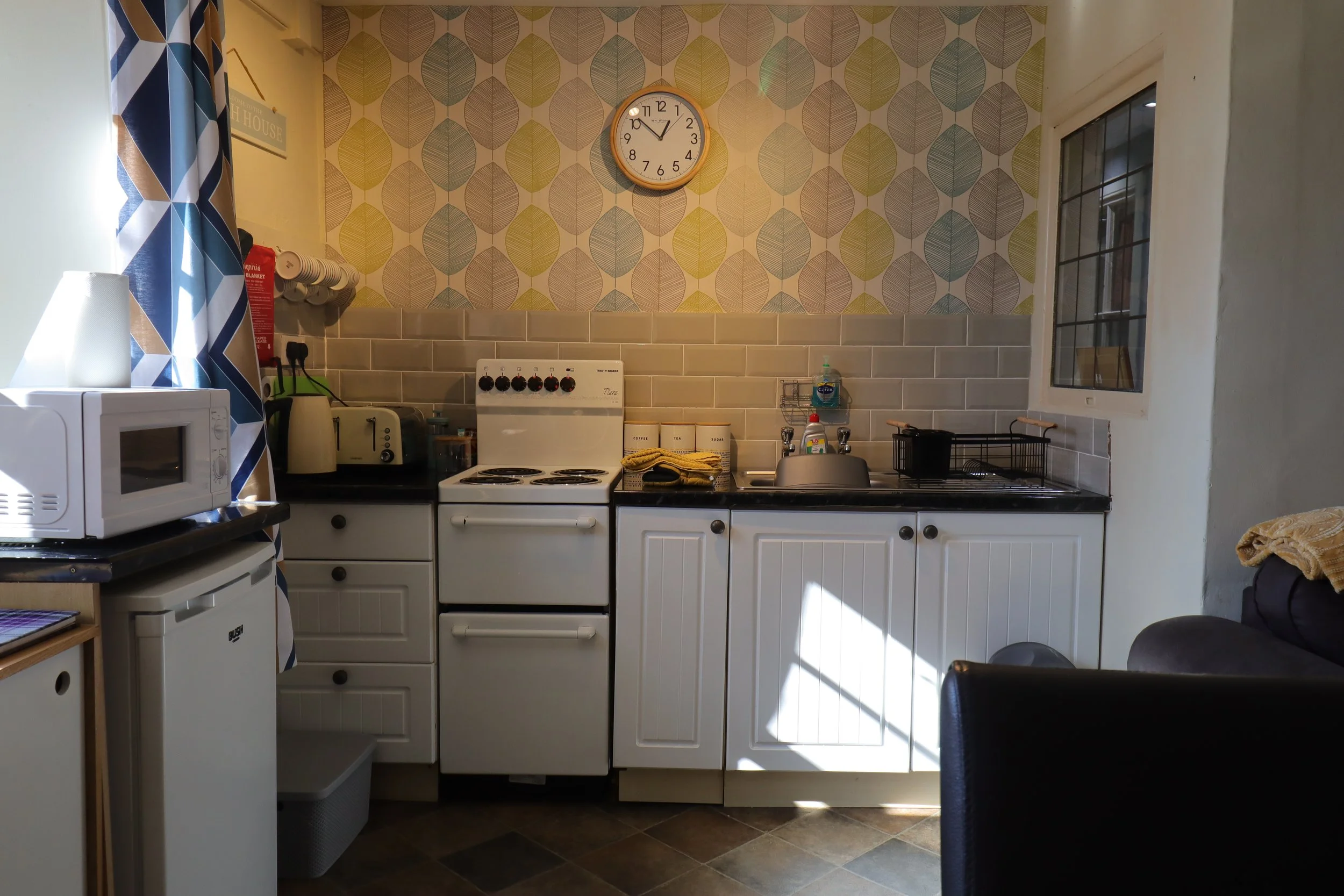 The kitchen and dining area are also fully equipped with all the essentials that you should need throughout your stay. There is an electric oven and hob, a microwave, fridge & freezer, and so much more!